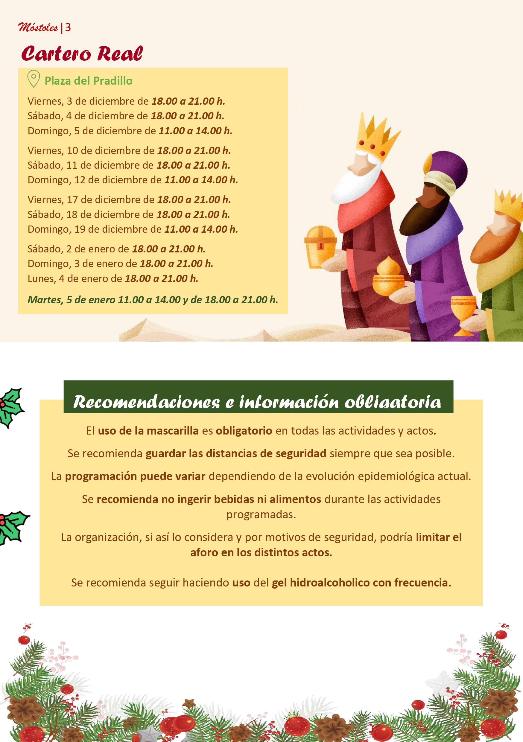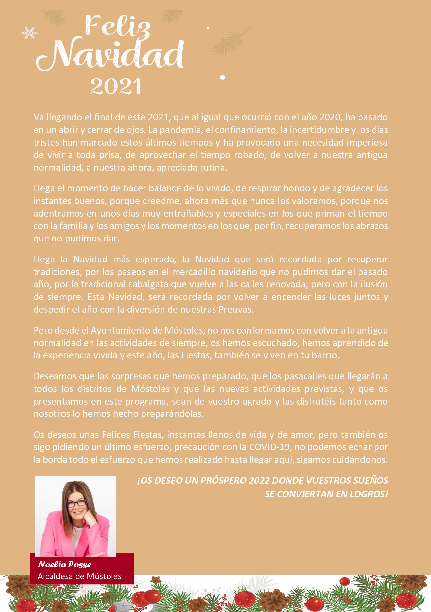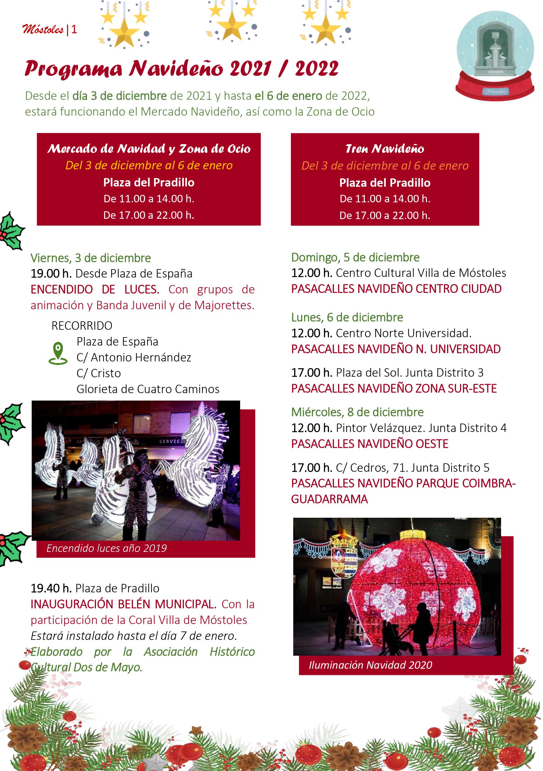 El Gobierno de Móstoles, formado por PSOE y Podemos, ha presentado hoy su programa de actividades para esta Navidad. Tras un año en el que las medidas para contener la expansión de la COVID-19 obligaron al Ejecutivo Local a reducir los eventos programados para poder garantizar la seguridad de los ciudadanos, este año, vuelven las Navidades a Móstoles y lo hacen recuperando sus principales eventos. Se extenderán desde el 3 de diciembre al 6 de enero.